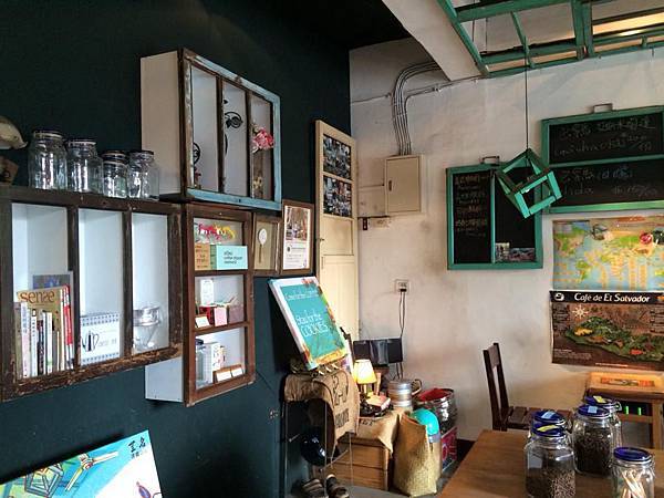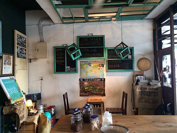 店裡面有很多老窗戶改的設計,店內放的桌子是以前農家時期用的拖車.