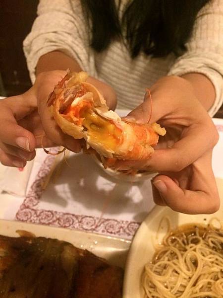 因為蝦子是活生生在我們坐的位子隔壁.直接就把它們抓起來煮熟了,蝦子請原諒我們這群愛吃鬼~嗚嗚不要來我夢裡找我