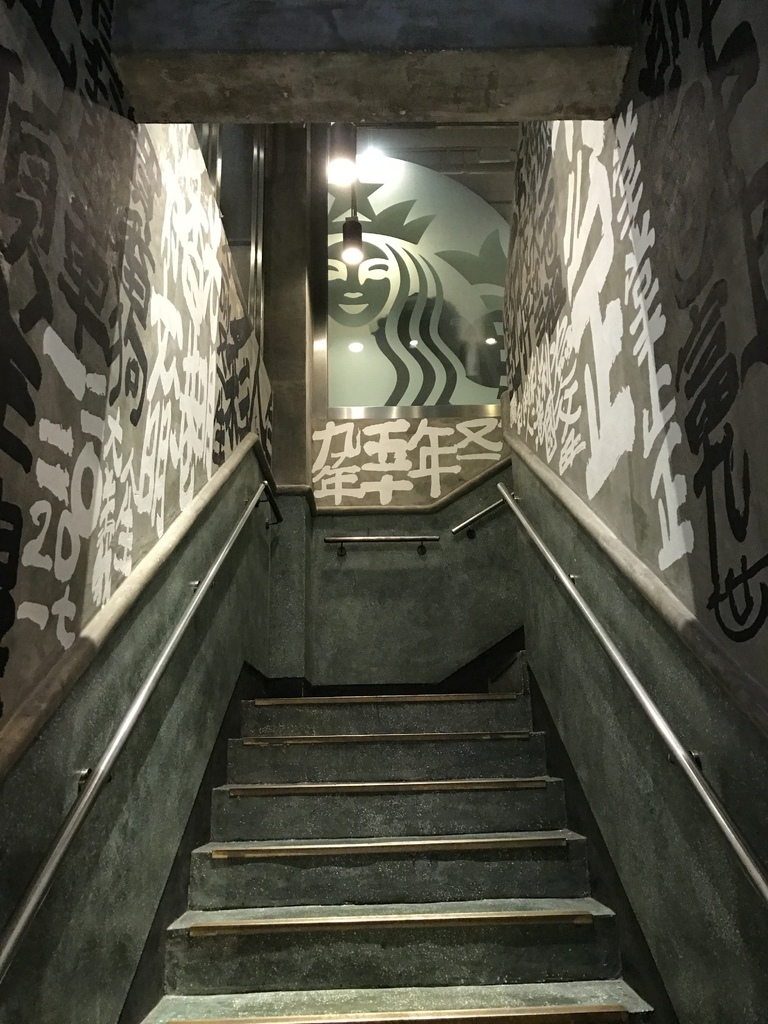 店很大,有三層樓,每一層樓的裝潢都很有特色,我覺得星巴克很用心