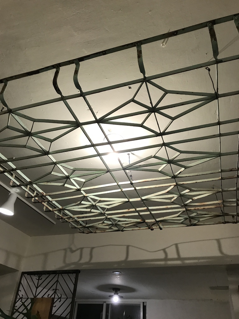 店裡有很多老鐵窗的擺設。喜歡耶,尤其是天花板的