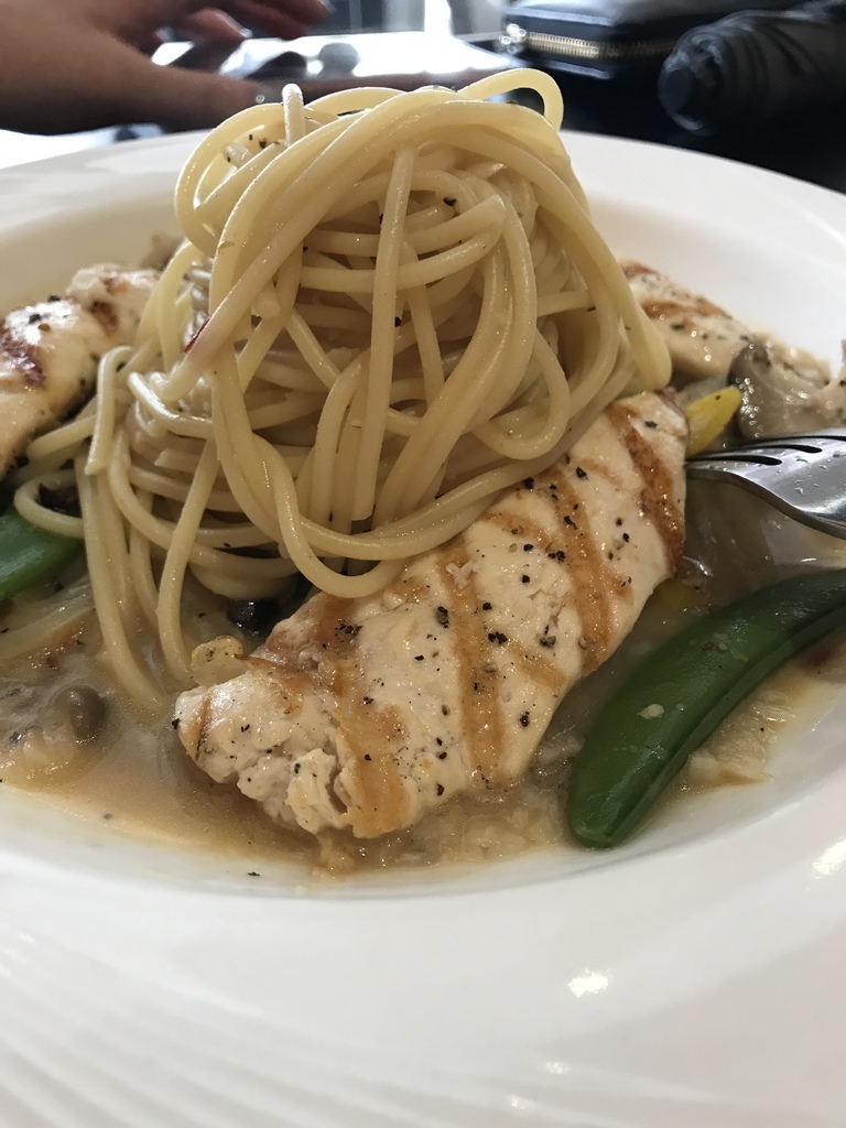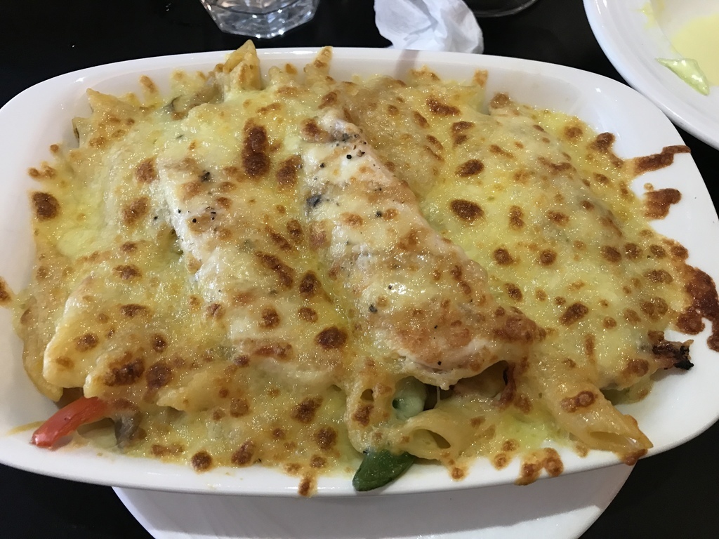 我吃的是焗烤空心管麵,雞肉給的很大方。也還不錯。起士我很愛。所以也不可能是地雷啦