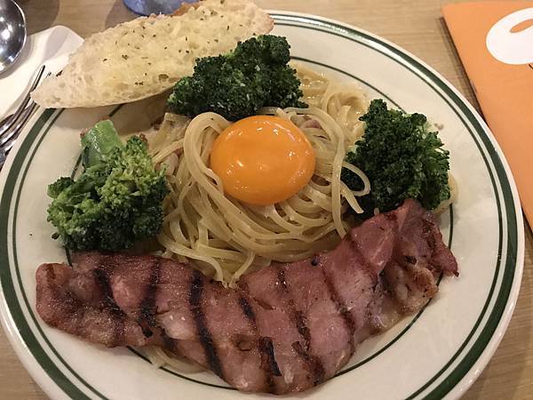 我吃的.培根蛋汁.白醬醬沖濃郁,中間的蛋黃.讓味道又到另一個感覺.忘記多少錢了.好像220元多